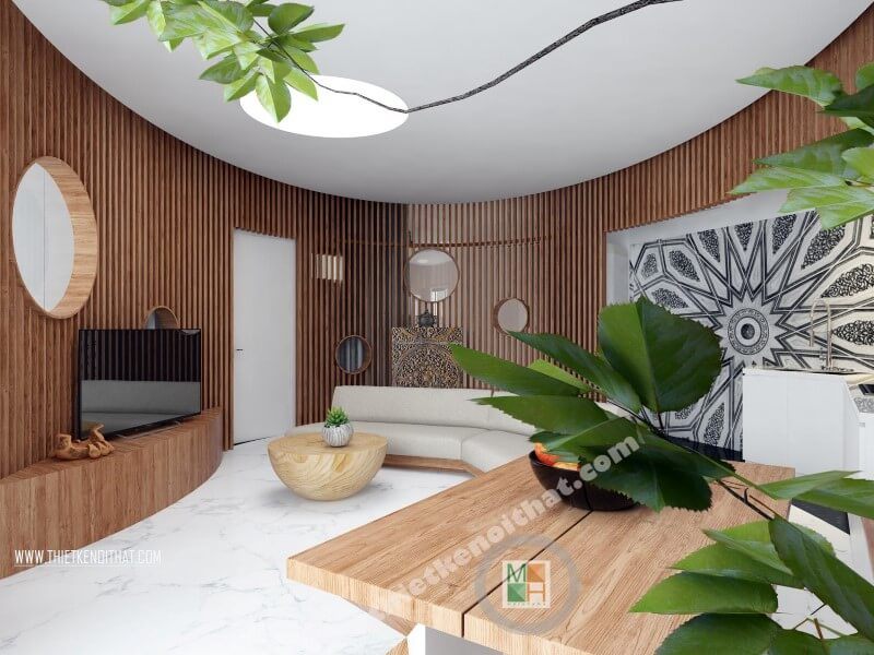Mẫu thiết kế chung cư Thăng Long Number 1 sang trọng phong cách gỗ Việt