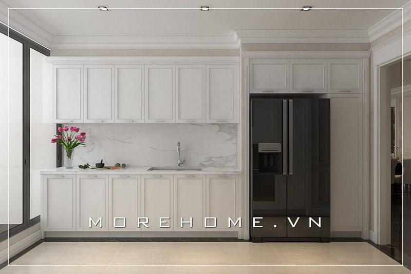 Thiết kế nội thất phòng bếp chung cư ấn tượng và sang trọng với lối thiết kế tân cổ điển nhẹ nhàng
