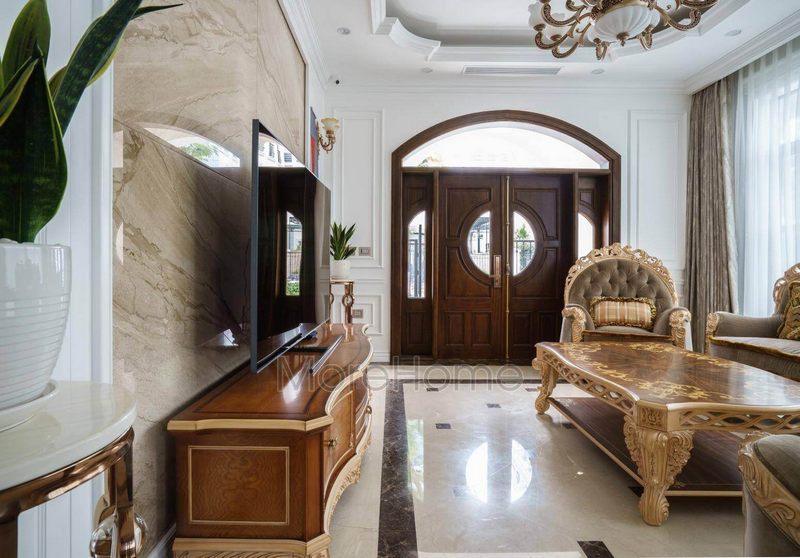 Nội thất màu sắc nâu trầm được sử dụng xuyên suốt trong thiết kế công trình Ocean Park với phong cách tân cổ điển sang trọng, giúp tạo sự đồng nhất cho cả không gian biệt thự