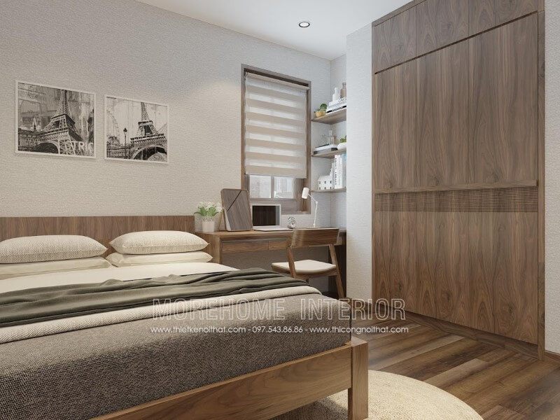 Đẹp tinh tế và rạng ngời với mẫu thiết kế phòng ngủ chung cư sang trọng và tiện nghi được thiết kế bởi đội ngũ KTS tại Morehome.