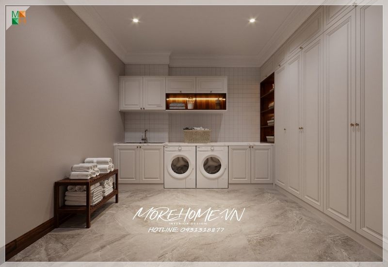 Phòng giặt với đầy đủ nội thất đầy đủ đáp ứng mục đích sinh hoạt và công năng sử dụng phòng giặt