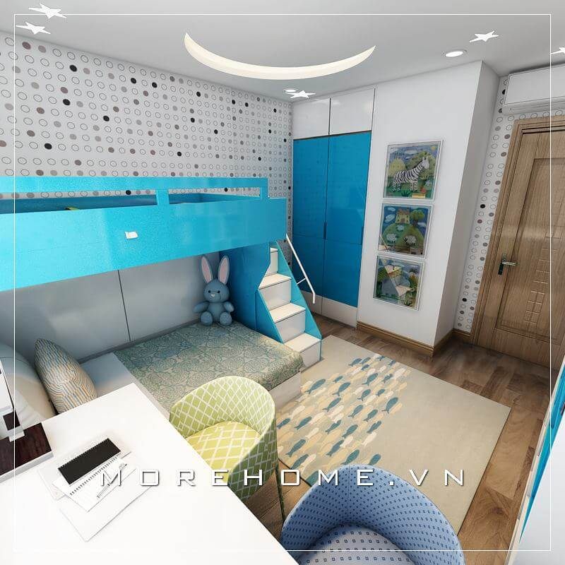 Giường tầng được coi là lựa chọn hoàn hảo cho không giang tuyệt vời cho 2 bé trai, nếu nhà bạn có nhiều trẻ con mà diện tích ngôi nhà có hạn thì đừng nên bỏ qua mẫu thiết kế này nhé