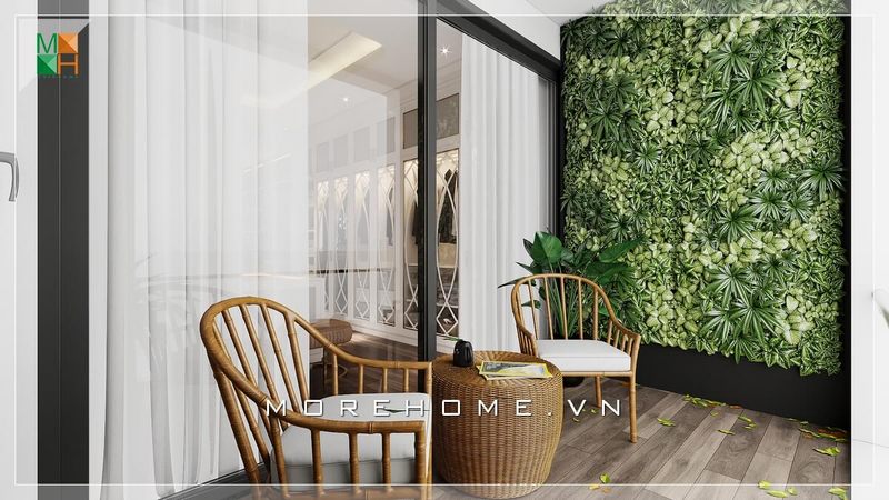 Ấn tượng mẫu bàn ghế rất độc đáo, nhìn khá đơn giản nhưng lại rất ấn tượng và phù hợp không gian ban công nơi này.