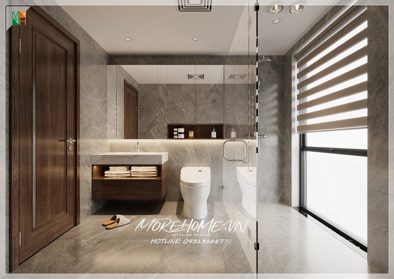 Mẫu thiết kế phòng vệ sinh hiện đại, tiện nghi với thiết bị vệ sinh cao cấp.