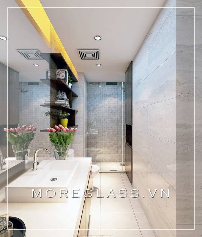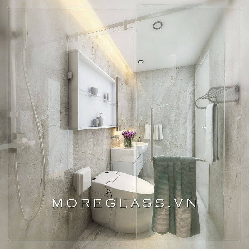 Với các căn nhà có kích thước hạn chế, khu vực phòng tắm kính thường nằm ở góc trong cùng của căn phòng.