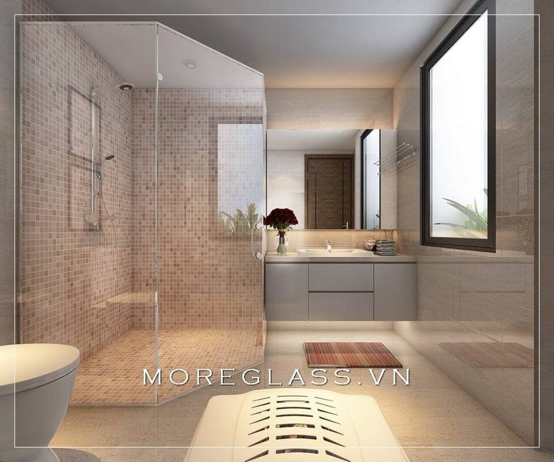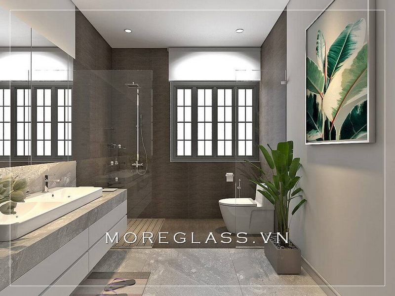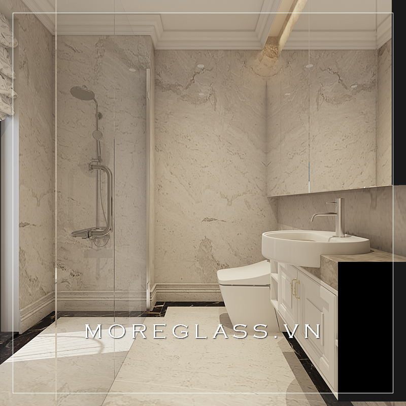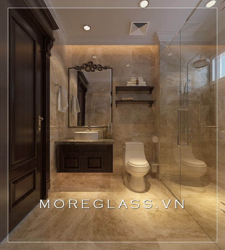 Sử dụng vách kính phòng tắm đứng sang trọng cho nhà vệ sinh biệt thự