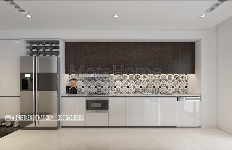 Thiết kế phòng bếp chung cư tách biệt hoàn toàn với không gian sinh hoạt chung khác, đồng thời vẫn đảm bảo tính tiện nghi và đồng nhất cho cả không gian sống của gia chủ